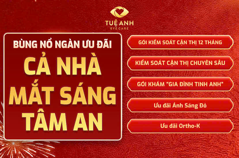 Đồng hành cùng sức khỏe thị giác của mọi nhà, Phòng khám Mắt Tuệ Anh triển khai chương trình ưu đãi lớn nhất trong năm, áp dụng cho các gói khám chuyên sâu và giải pháp kiểm soát cận thị cho trẻ.