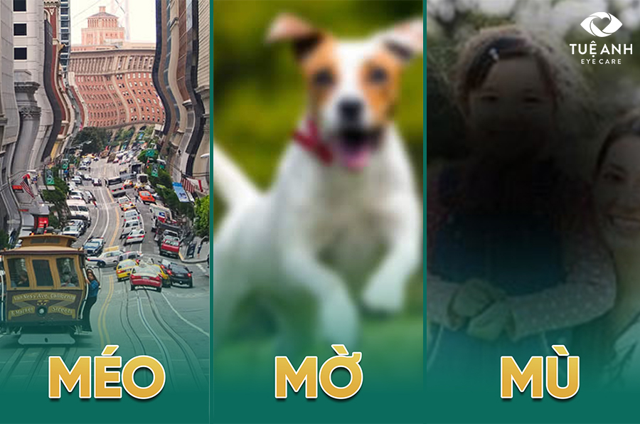 - Mờ: Thị lực trung tâm giảm, khó nhìn rõ chi tiết