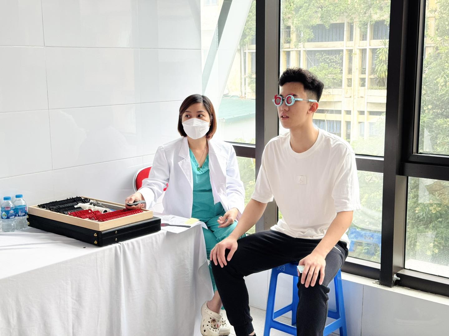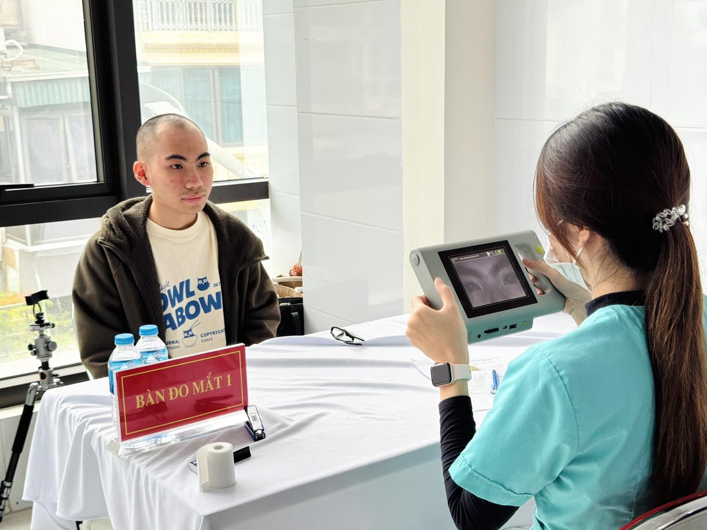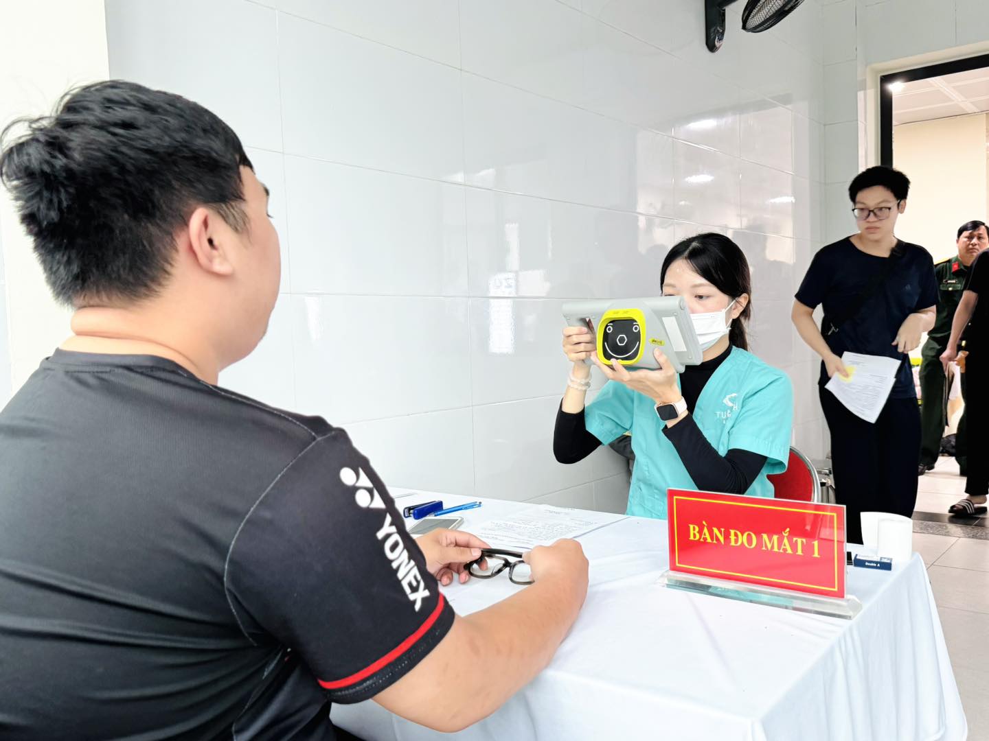 Trong các buổi khám, đội ngũ bác sĩ và kỹ thuật viên của Phòng khám Mắt Tuệ Anh trực tiếp thực hiện các bước kiểm tra mắt, bao gồm đo khúc xạ, thử thị lực và thử kính cho các công dân trong độ tuổi thực hiện nghĩa vụ quân sự. Qua đó, giúp đánh giá chính xác tình trạng thị lực và hỗ trợ hoàn thiện hồ sơ sức khỏe theo đúng quy định.