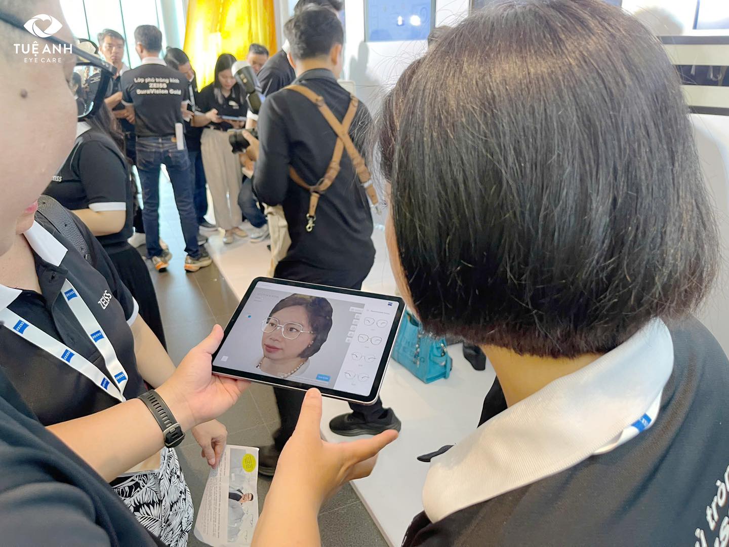Một trong những thiết bị nổi bật tại sự kiện là Visufit 1000 – công nghệ mô phỏng thị giác tiên tiến cho phép đo và phân tích thông số mắt, mô phỏng gọng kính trực quan trên khuôn mặt khách hàng. Thiết bị này hỗ trợ tối ưu trong việc chọn gọng kính phù hợp, đồng thời đảm bảo lắp kính đa tròng một cách chính xác và thoải mái nhất cho người đeo.