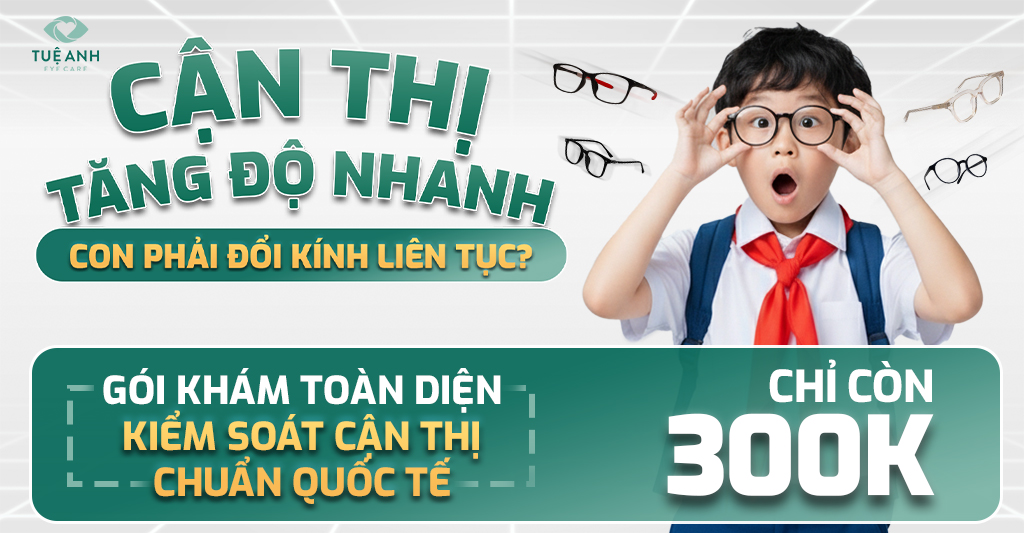 Cận thị học đường đang ngày càng gia tăng nhanh chóng ở trẻ em. Không chỉ ảnh hưởng đến học tập và sinh hoạt hàng ngày, cận thị tiến triển còn có thể gây ra nhiều biến chứng nguy hiểm nếu không được kiểm soát kịp thời. Tại Phòng khám Mắt Tuệ Anh, ba mẹ có thể đưa con khám toàn diện chỉ với 300.000 đồng và được miễn phí đo chiều dài trục nhãn cầu – một chỉ số quan trọng giúp bác sĩ đánh giá nguy cơ tiến triển cận thị.